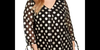 Blusa Alfani Feminina Plus com Bolinhas Metálicas e Manga Transparente em Lurex Dourado, Preto, Tamanho 0X