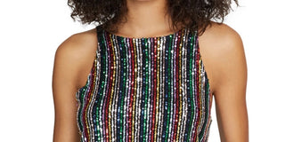 Vestido curto de festa com alças finas e lantejoulas listradas Sanctuary para mulheres, decote em V, preto, tamanho médio