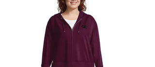 Moletom com capuz Champion Plus feminino tamanho Heritage com zíper e detalhes em espinha de peixe roxo escuro tamanho 1X