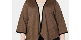 Cardigan feminino Alfani plus size com drapeado frontal, bege escuro, tamanho 1X