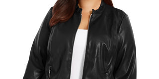 Jaqueta de couro sintético plus size feminina Alfani, preta, tamanho 0X