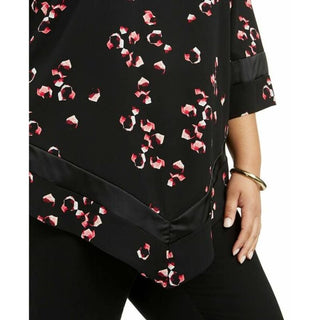 Túnica feminina Alfani plus size de chiffon com acabamento em V e bainha preta, tamanho 0X