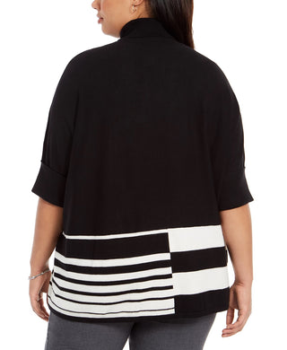 Poncho feminino Alfani Plus Size Colorblocked Gola Alta Preto Tamanho 2X