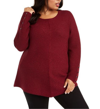 Alfani Suéter túnica feminino plus size com nervuras metálicas, vermelho, tamanho OX