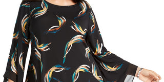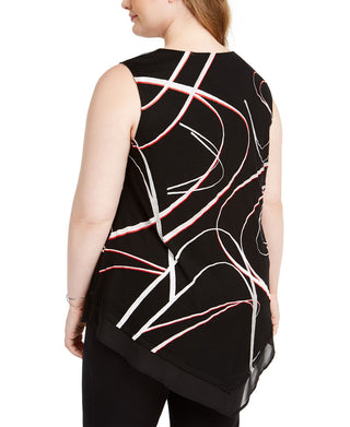 Blusa assimétrica estampada sem mangas Alfani feminina, preta, tamanho 2X