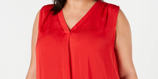 Top feminino Alfani plus size com decote em V, médio, vermelho, tamanho 3X