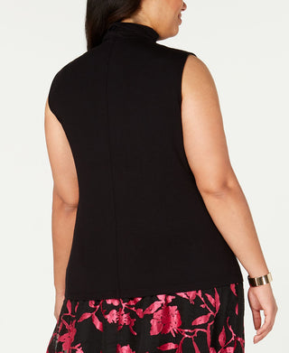 Blusa feminina Alfani Plus sem mangas com gola falsa, preta, tamanho 2X