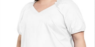 Blusa feminina Alfani Plus com decote dividido e manga curta, branca, tamanho 1X