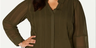 Blusa texturizada com botões frontais Alfani Plus para mulheres, verde, tamanho 3X