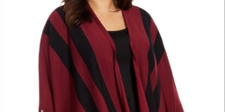 Cardigan feminino Alfani Plus listrado com frente aberta, vermelho, tamanho 1X
