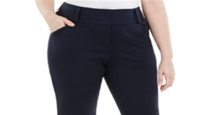 Calça Alfani Feminina Plus Tummy Control com Acabamento em Couro Sintético Azul Marinho Tamanho 26W