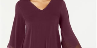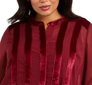 Blusa feminina Alfani com bainha pontuda e acabamento em chiffon, cor vinho, tamanho pequeno P