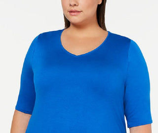 Camiseta feminina Alfani Plus com decote em V e alças largas, azul, tamanho 1X