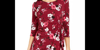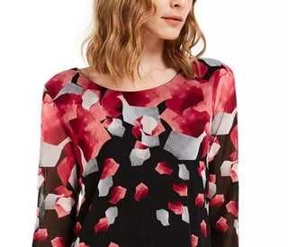 Blusa assimétrica com estampa de manga 3/4 feminina Alfani, vermelha, tamanho pequeno