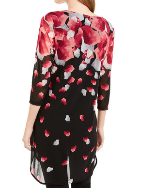 Túnica feminina Alfani estampada com manga 3/4 rosa e preta, tamanho pequeno P