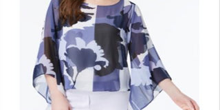 Túnica feminina Alfani estampada com manga 3/4 para usar no trabalho, azul, tamanho pequeno