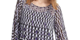 Blusa feminina Alfani com estampa de anjo e manga comprida, roxa, tamanho pequeno, extragrande
