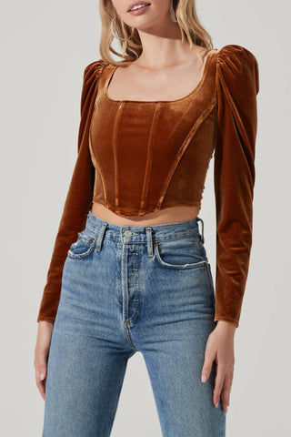 Astr - Velvet Long-sleeve Corset Top With Smocked Back
