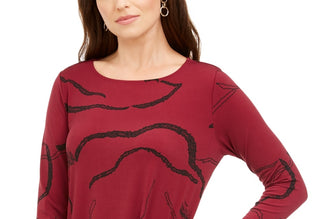 Top feminino Alfani com bainha de lenço estampado, vermelho, tamanho pequeno e pequeno