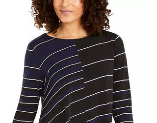 Túnica feminina Alfani estampada com listras azul-marinho/brancas, tamanho pequeno P/M