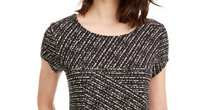 Camiseta feminina estampada Alfani com bainha redonda, preta/branca, tamanho PS/M