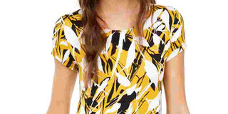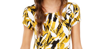 Camiseta feminina Alfani estampada com bainha redonda, tamanho pequeno, amarela