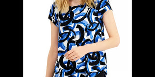 Camiseta feminina Alfani estampada com bainha redonda, tamanho azul - PS
