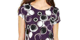 Camiseta feminina Alfani estampada com bainha redonda, roxa, tamanho pequeno e pequeno