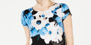 Camiseta feminina Alfani estampada com bainha redonda, azul, tamanho pequeno pequeno