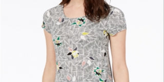Camiseta feminina Alfani estampada com bainha redonda, cinza, tamanho pequeno M