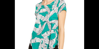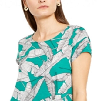 Camiseta feminina Alfani estampada com bainha redonda, verde, tamanho pequeno GG