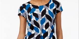 Camiseta feminina Alfani estampada com bainha redonda, azul, tamanho pequeno médio