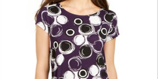 Camiseta feminina Alfani estampada com bainha redonda, roxa, tamanho pequeno GG
