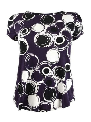 Camiseta feminina Alfani estampada com bainha redonda, roxa, vários tamanhos, pequena, G