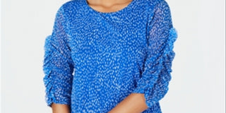 Blusa feminina Alfani com estampa de manga franzida e bolhas em malha, azul, tamanho pequeno G