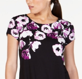 Camiseta feminina Alfani estampada com bainha redonda, roxa, tamanho pequeno médio
