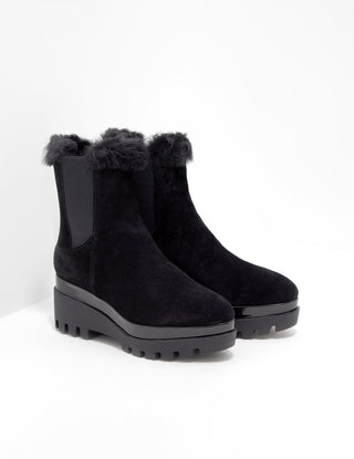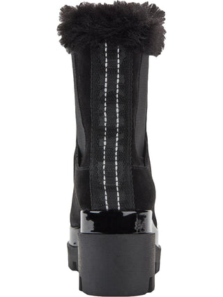 Botas femininas DKNY de tecido com bico amendoado e cano curto, tamanho 9, pretas