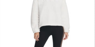 Moletom com capuz feminino DKNY com logo de pele sintética, branco, tamanho GG