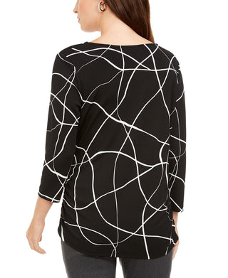 Blusa feminina Alfani estampada franzida preta tamanho pequeno