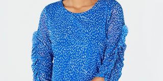 Blusa feminina Alfani com estampa de manga franzida e bolhas em malha, tamanho pequeno e médio, azul