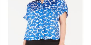 Blusa feminina Alfani estampada manga curta azul tamanho pequeno grande