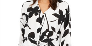 Blusa feminina Alfani com estampa e punhos em gravata, tamanho pequeno, branca