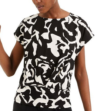 Blusa feminina Alfani com estampa e mangas amarradas, preta, tamanho P