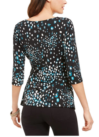 Blusa estampada feminina Alfani, preta/azul-petróleo, leopardo, tamanho pequeno, P/M