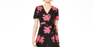 Vestido envelope estampado feminino Alfani, preto, tamanho 4, pequeno