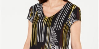 Camiseta feminina estampada com decote em V da Alfani, preta, tamanho pequeno