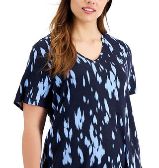 Camiseta feminina estampada com decote em V Alfani, azul, tamanho 0X