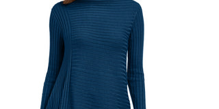 Suéter assimétrico canelado feminino Alfani azul tamanho grande