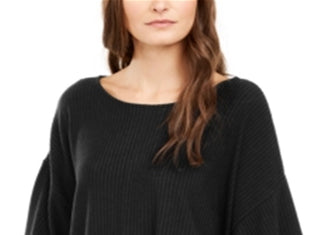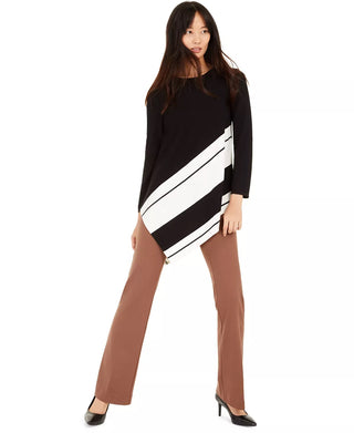 Alfani Suéter túnica assimétrico canelado feminino, preto, tamanho grande