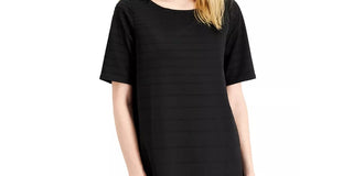 Blusa túnica longa canelada feminina Alfani, preta, tamanho X-G